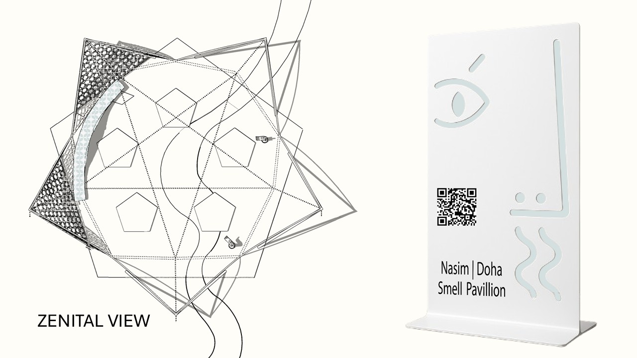 Nose-inspired seating translates scent into form. Its flowing silhouette mirrors the path of inhalation, complementing the pavilion’s kinetic sculptures and neuro-modulating aromatic plants that restore sensory balance and evoke memory.