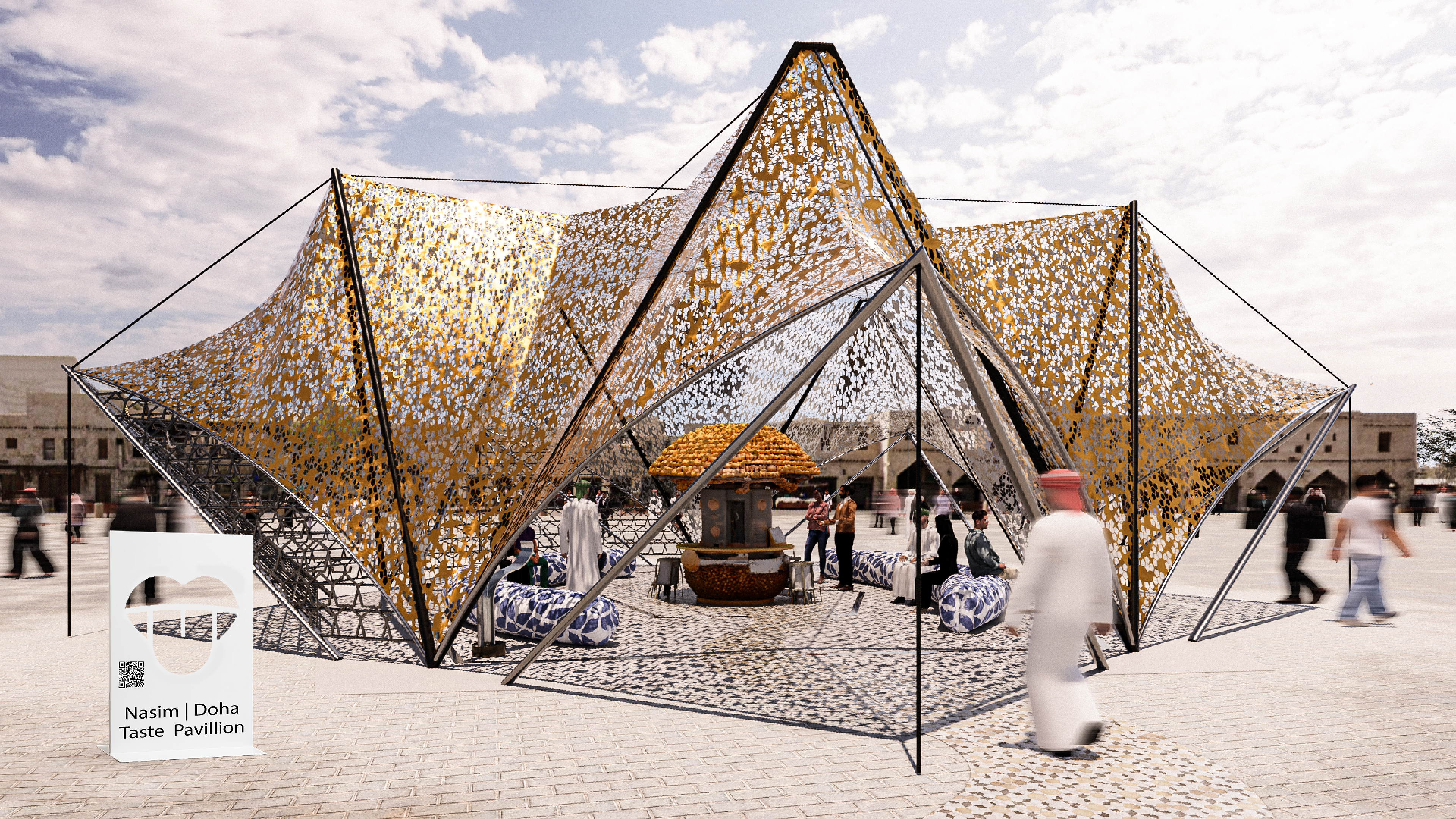 In the vibrant heart of Doha’s spice market, this pavilion offers a sensory celebration of taste and sustainability. Here, the innovative Feel the Peel© system transforms discarded citrus peels into bioplastic, used to 3D-print cups on site. Visitors can enjoy freshly squeezed juice in a fully circular experience that unites flavor, environmental awareness and the marketplace’s timeless atmosphere